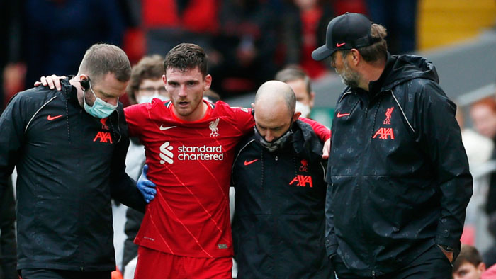 วันที่ 9 ส.ค. 64 เยอร์เกน คลอปป์ ผู้จัดการทีมลิเวอร์พูล ให้สัมภาษณ์หลังจบเกมอุ่นเครื่องเสมอกับ แอธเลติก บิลเบา 1-1 เมื่อคืนที่ผ่านมา ซึ่งเสีย แอนดรูว์ โรเบิร์ตสัน แบ็กซ้ายตัวเก่งที่เจ็บข้อเท้าต้องเปลี่ยนตัวออกมา และกำลังรอลุ้นผลการสแกนเพื่อประเมินอาการบาดเจ็บ
