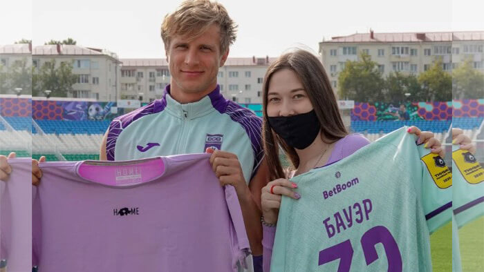 มอริตส์ บาวเออร์ แบ็กขวาจากสโมสรเอฟซี อูฟา เชิญแฟนบอลสาวสุดสวยมาที่สนามซ้อมพร้อมมอบเสื้อแข่งให้เป็นของขวัญ หลังประทับใจกับความพยายามของเธอที่ลงทุนเปลื้องผ้าโชว์สุดชั้นในสีม่วงสดใสท้าความหนาวในเกมลีกเมื่อช่วงปลายสัปดาห์