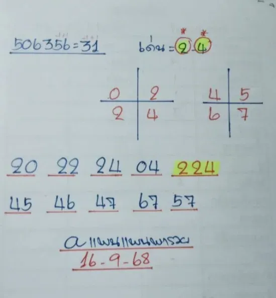 เลขที่น่าสนใจในงวดวันอังคารที่ 16 กันยายน 68 นี้ ให้เลขเด่น คือ 2 - 4 สำหรับเลขท้าย 2 ตัวมีดังนี้ 20 - 22 - 24 - 04 - 45 - 46 - 47 - 67 - 57 และเลขท้าย 3 ตัว คือ 224 แต่อย่างไรก็ดี แนวทางข้างต้นนี้ก็เป็นการคำนวณตามหลักสถิติเท่านั้น ยังไงก็ได้โปรดใช้วิจารณญาณในการรับชมข้อมูลกันด้วย และก็ควรที่จะซื้อหวยกันแต่พอดี เพราะการเสี่ยงโชคก็ย่อมมีความเสี่ยงตามมา สุดท้ายนี้ก็ขอให้ทุกท่านโชคดีร่ำรวยและถูกหวยตลอดไป