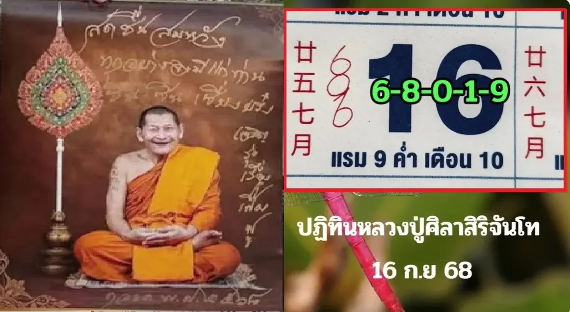 สำหรับหวยในงวดนี้ก็ออกในวันอังคาร ที่ 16 กันยายน 2568 เราลองมาส่องดูที่ปฏิทิน "หลวงปู่ศิลา" ก็จะพบว่า ตัวเลขที่ให้มานั้นมันประกอบด้วยเลข 6 - 8 - 0 - 1 - 9 ทั้งนี้ก็สามารถจับคู่เป็นตัวเลขต่างๆ ได้ดังนี้ เลขท้าย 3 ตัว คือ 189 ,681 ,106 ,980 ,669 ,098 ส่วนเลขท้าย 2 ตัวที่ได้มีดังนี้ 89, 81, 06, 80, 69, 98, 10, 66, 86 สำหรับตัวเลขที่ให้นั้นทุกท่านสามารถนำเอาไปสลับจับคู่กันได้ตามชอบใจ และใช้เป็นแนวทางในการเสี่ยงโชคสำหรับงวดนี้ได้