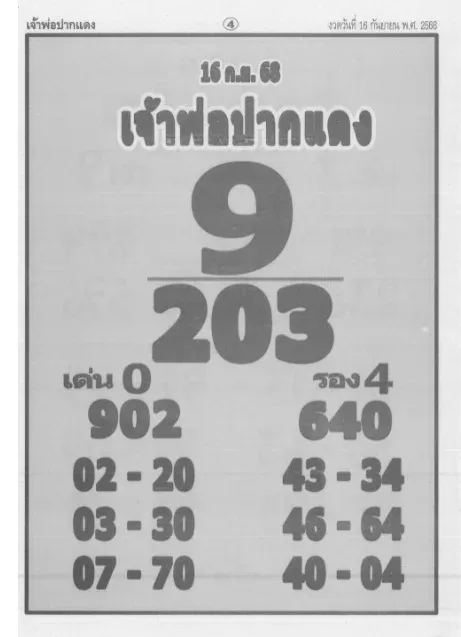 เลขเด็ด เจ้าพ่อปากแดง งวดวันที่ 16/9/68 นี้ก็ได้ปล่อยทั้งเลขเด่น เลขดัง มาให้บรรดาคอหวยได้ไปพิจารณากันเอาเอง สำหรับใช้เป็นแนวทางในการเสี่ยงโชคซื้อลอตเตอรี่ โดยงวดนี้มีเลขเด่น คือ 0 และรอง คือ 4 ส่วนตัวเลขในชุดอื่น ๆ ก็มีความน่าสนใจเป็นอย่างมาก สามารถตามไปดูที่ใบหวยด้านล่างกระทู้กันได้เลย