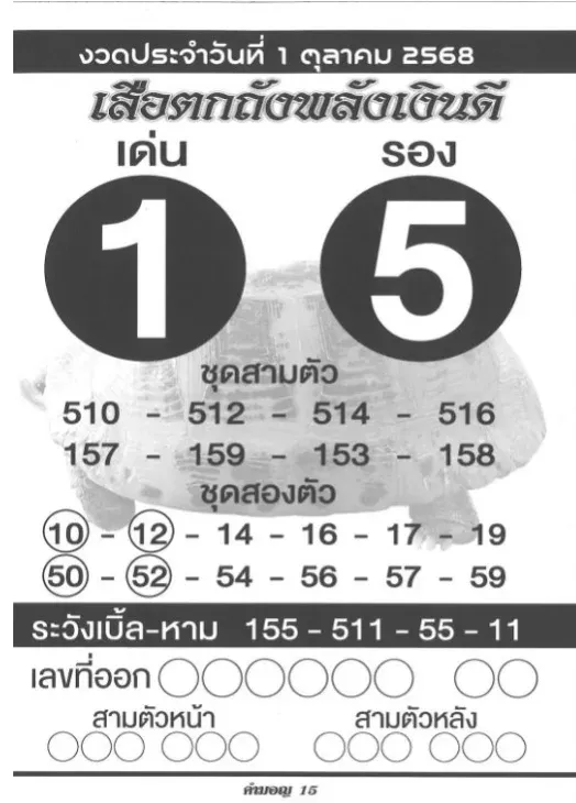 เลขเด็ด เสือตกถังพลังเงินดี งวดวันที่ 1/10/68 นี้ก็ได้ปล่อยทั้งเลขเด่น เลขดัง มาให้บรรดาคอหวยได้ไปพิจารณากัน สำหรับใช้เป็นแนวทางในการเสี่ยงโชคซื้อลอตเตอรี่ โดยงวดนี้มีเลขเด่น คือ 1 และรอง คือ 5 ส่วนตัวเลขในชุดอื่น ๆ ก็มีความน่าสนใจเป็นอย่างมาก สามารถไปดูที่ใบหวยด้านล่างกระทู้กันได้เลย