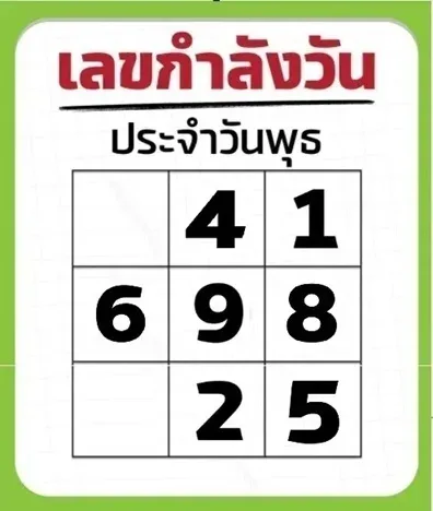 สำหรับหวยในงวดนี้ก็ออกในวันพุธที่ 1 ตุลาคม พศ.2568 โดยในตารางเลขกำลังวัน ประจำวันพุธก็ประกอบไปด้วยเลข 4 - 1 - 6 - 9 - 8 - 2 - 5 ซี่งเราสามารถนำมาสลับจับคู่เป็นเลขเด็ดในงวดนี้ได้ดังนี้คือ เลขท้าย 2 ตัว มี 41, 89, 95, 51, 25, 86, 46, 58, 12, 19, 81, 48 และ 69 และสำหรับเลขเด่นก็คือ เลข 9 บอกเลยว่าแนวทางดีๆ เหล่านี้ก็อย่าปล่อยให้หลุดมือเด็ดขาด ซื้อหวยแค่พอเป็นความหวังอย่าให้ชีวิตพังเพราะเล่นหวยจนหมดตัว