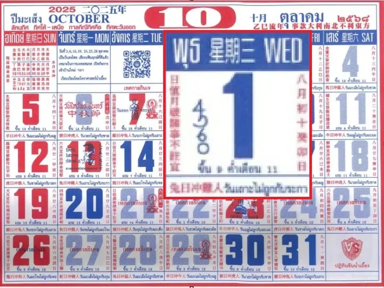 เลขเด็ดปฏิทินจีน งวดวันที่ 1/10/68