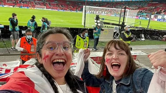 แฟนบอลสาวชาวอังกฤษ โดนไล่ออกจากงานหลังจากมีภาพที่เธอเข้าไปเชียร์ทัพ "สิงโตคำราม" ในแมตช์ชนะ เดนมาร์ก 2-1 ช่วงต่อเวลาพิเศษ ในรอบรองชนะเลิศ ศึกยูโร 2020 ทั้งๆ ทั้งที่บอกกับบริษัทว่าขอลาป่วย